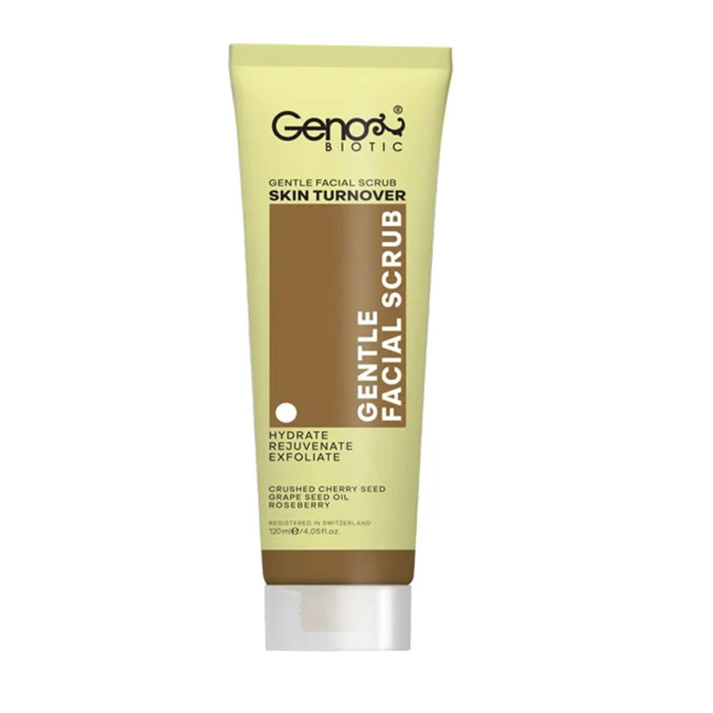 اسکراب صورت ملایم ژنوبایوتیک محصولی مناسب برای لایهبرداری ملایم هفتگی صورت است. گرانولهای طبیعی هسته گیلاس به آرامی لایه های مرده پوست را از بین میبرد و پوستی نرم و شفاف بهارمغان میآورد. روغن هسته انگور باعث رطوبت رسانی به پوست صورت میشود. رزبری که دیگر ترکیب بهکار رفته در این محصول است با داشتن خاصیت آنتی اکسیدانی پوست را شفاف و درخشان میسازد.